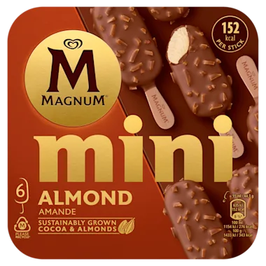 Vanille-ijs omhuld met melkchocolade (32%) en amandelen (4,5%).