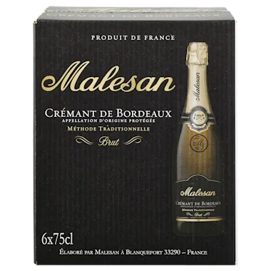 Malesan toont zijn knowhow met deze Crémant de Bordeaux. De gebruikte druivenrassen zijn de Sémillon en Cabernet Franc, die met de hand worden geoogst door onze wijnbouwpartners en gevinifieerd volgens de traditionele methode. De 12 maanden durende bereiding geeft Malesan Crémant de Bordeaux zijn finesse en elegantie.