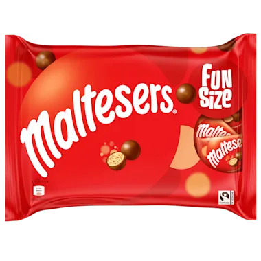 Maltesers Funsize – kleine zakjes, groot plezier! Geniet van de perfecte porties Maltesers: luchtige, krokante vulling met een overheerlijke laag romige melkchocolade. Ideaal om uit te delen of gewoon zelf van te smullen. Deel het plezier met Maltesers!