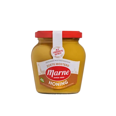 Marne Honing Mosterd is een zeer milde mosterd, omdat er honing door de mosterd is verwerkt. Het resultaat is een verrukkelijk zachte, zoete smaak. Marne Honing Mosterd is óók erg lekker door sauzen of vinaigrettes.