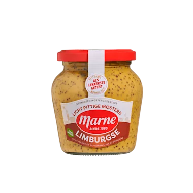 Ons unieke Limburgse recept geeft Marne Limburgse Mosterd een ware Bourgondische smaak. Een milde mosterd met in natuurlijke azijn gewelde mosterdzaadjes.
