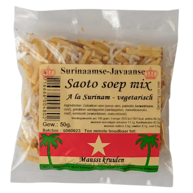 Ingrediënten: Gebakken uien (verse uien, palmolieolie, TARWEBLOEM, zout), gebakken aardappelen (aardappelen, zonnebloemolie, zout), vermicelli (erwtenbloem, maïszetmeel.
