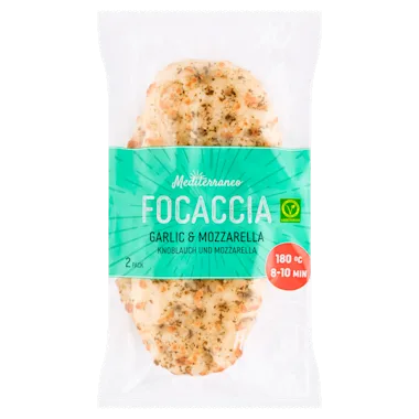 Een heerlijke mediterraanse broodspecialiteit in handige duo verpakking. Enkel afbakken, op tafel zetten en genieten. Rijkelijk gegarneerd met knoflook en mozzarella.