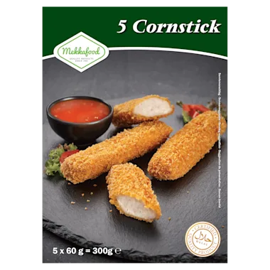 van fijngesneden kippenvlees, gevormd en in een knapperige cornflakes panade, voorgebraden, diepgevroren