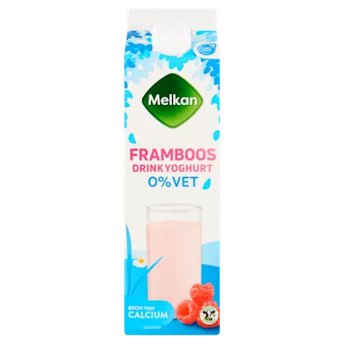 Magere drinkyoghurt met appel-, framboos-, aroniabes- en citroensap, gezoet met zoetstof