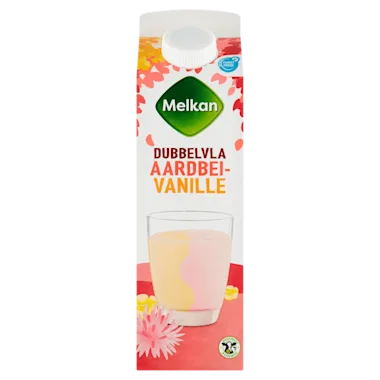 Gepasteuriseerde dubbelvla met 50% vanillevla en 50% aardbeivla