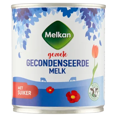 Gecondenseerde volle melk met suiker met 9% melkvet en 22% vetvrije melkbestanddelen.