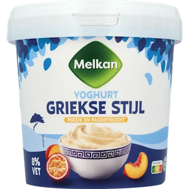 Griekse stijl yoghurt met perzik- en passievruchtsap uit concentraat
