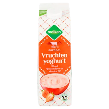 Ingrediënten :Magere yoghurt (MELK), 7% fruit (86% aardbei, 14% aardbeipuree), suiker, gemodificeerd maïszetmeel, citroensapconcentraat, kleurend plantenextract (zwarte wortel, saffloer, kers), natuurlijk aroma.