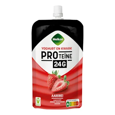 Ingrediënten :50% magere yoghurt (MELK), 40% magere kwark (MELK), 10% aardbeienbereiding (water, oplosbare maïsvezels, 11% aardbeienpuree, gemodificeerd maïszetmeel, aroma, kleurstof: E163, voedingszuur: E330, natuurlijk aroma, verdikkingsmiddel: E407, zoetstof: E955/E950, zuurteregelaar: E331).