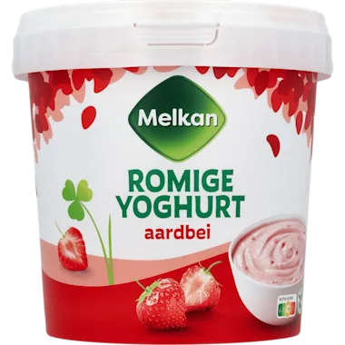 87% volle yoghurt (MELK), 13% aardbeibereiding (46% aardbei, suiker, 3% aardbeiensap uit concentraat, glucose-fructosesiroop, aroma's, wortelconcentraat, gemodificeerd maïszetmeel, verdikkingsmiddel: pectinen/guargom, stabilisator: natriumcitraten/calciumcitraten/citroenzuur).