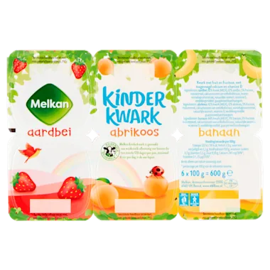 abrikoos: 82% kwark (MELK), 12% abrikoos, 5% fructose, maïszetmeel, calciumzouten van orthofosforzuur, wortelsapconcentraat, natuurlijke aroma's, vitamine D, verdikkingsmiddel: guarpitmeel/xanthaangom.