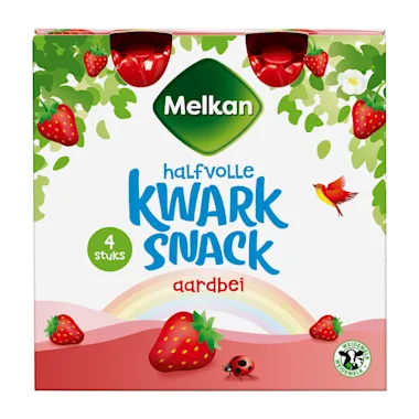 Melkan Toetiemonster Zuivelsnack Halfvolle kwark aardbei 4s