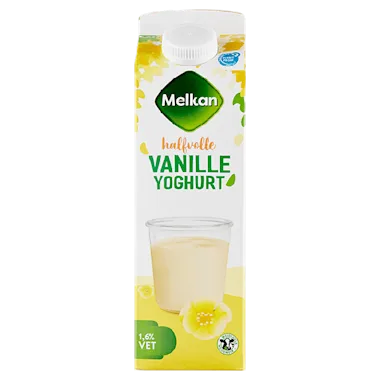 Ingrediënten :halfvolle yoghurt (MELK), water, suiker, gemodificeerd tapiocazetmeel, vanille-extract, natuurlijk aroma, kleurstof: curcumine/annatto norbixine.