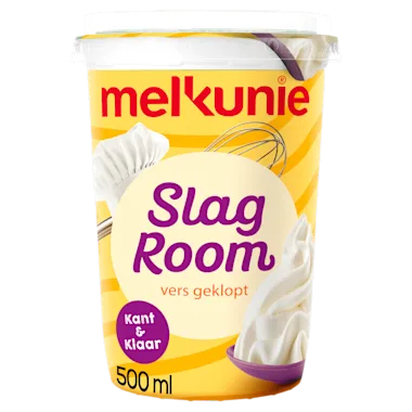 Kant en klare slagroom van Melkunie. Vers geklopt.