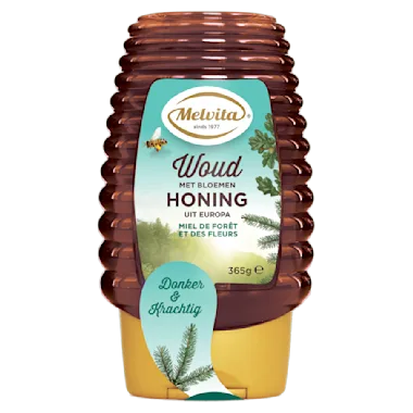 Deze Woud- met bloemenhoning is vol en krachtig van smaak. Lekker bij kaas, bij hartige gerechten en door een notentaart.