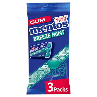 Mentos Gum Breeze Mint is een stevige frisse kauwgum van Mentos met menthol-eucalyptussmaak. Voor wie van extra fris houdt, met drie pakjes in een verpakking.