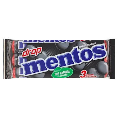 Geniet van de Mentos Drop rol, zijn bedrieglijk witte uiterlijk verbergt een heerlijke, mysterieus donkere binnenkant; mint en drop, een onweerstaanbare combinatie voor levensgenieters.