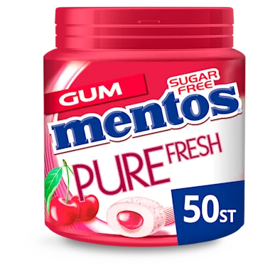 Mentos Pure Fresh Cherry zijn friszoete kauwgums met kersensmaak. De vloeibare kern zorgt voor een intense fruitsensatie en een zuivere frisheid. Met 5 kauwgums in een pot.