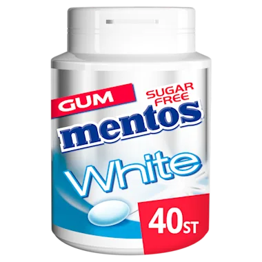 Geniet van Mentos Gum White Sweetmint, een frisse kauwgum met mild zoete mintsmaak. Met maar liefst 4 kauwgums in een pot!