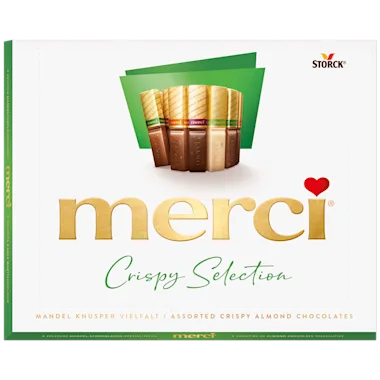 Chocoladespecialiteiten met amandel (6,7%) en andere krokante stukjes.