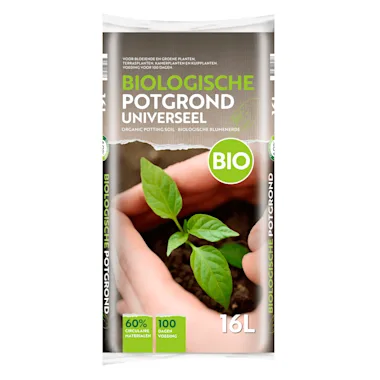 Universele BIO potgrond, speciaal voor het op- en verpotten van de meeste huis, tuin en balkonplanten. De speciaal geselecteerde ingrediënten en afgestemde plantaardige BIO bemesting garanderen een uitbundige groei en bloei.