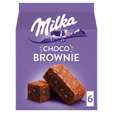 Een heerlijke brownie die gemaakt is van echte Milka Alpenmelkchocolade met zachte chocoladestukjes.