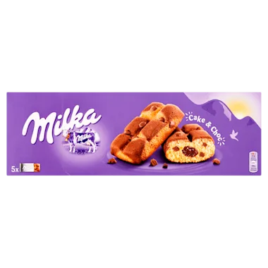 Een zacht cakeje met stukjes Milka Alpenmelkchocolade en een heerlijke chocoladevulling.