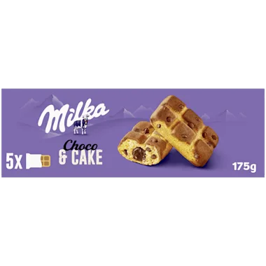 Een zacht cakeje met stukjes Milka Alpenmelkchocolade en een heerlijke chocoladevulling.