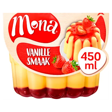 Ingrediënten: MELK, suiker, 6% aardbeiensap, glucose-(fructose)stroop, gemodificeerd maïszetmeel, maïszetmeel, MELKeiwit, rundergelatine, verdikkingsmiddel: E415, voedingszuur: citroenzuur, aroma, kleurstoffen: E120, E160a en E160b(ii), stabilisator: E339