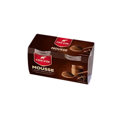 Pure chocolademousse en topping (28,2%) met Côte d'Or chocolade. Ontdooid.