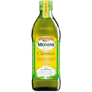 De "extra-vierge" Classico Monini is een zuivere olijfolie met een rijke, evenwichtige smaak. Ze past uitstekend bij warme gerechten (gevogelte, sauzen) evenals bij koude gerechten (salades). Olijfolie heeft de eigenschap te stollen bij temperaturen onder de 10° C. Dit heeft geen invloed op de kwaliteit. Bij kamertemperatuur komt de olie terug in haar oorspronkelijke staat.