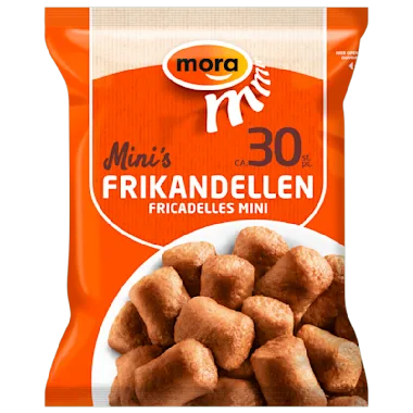 Mini Frikandellen worden op gewicht verpakt, dus kan de verpakking méér of minder dan 30 stuks bevatten.
