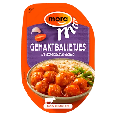 36% gemarineerde, gegaarde rundvleesballetjes (samengesteld uit stukjes vlees) / 64% zoetzure saus