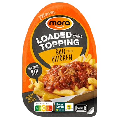 25% Gemarineerd, gegaard kippenvlees 75% barbecuesaus. Diepvries.