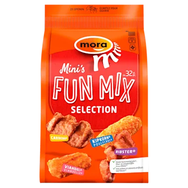 Mix van 4 voorgegaarde mini hapjes, diepvries.