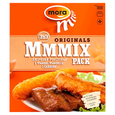 Ingrediënten: Kipkorn: kippenvlees 34% (waarvan mechanisch gesepareerd kippenvlees 21%), water, plantaardige oliën (palm, raap), paneermeel (TARWEbloem, water, gist, zout), cornflakes (maïs, GERSTEmoutextract, zout, suiker), TARWEbloem, kippenvet, kippencollageen, SOJA-eiwit concentraat, zout, doorhaalmiddel (meel (TARWE, ROGGE), TARWEzetmeel, rijsmiddelen: E450 en E500, zout, palmolie, weipoeder (MELK), MELKeiwit, TARWEgluten), emulgatoren: E450, E451 en E452, natuurlijke aroma's, specerijen, uipoeder, antioxidant: E300, kruiden. Kan sporen van EI bevatten. Ingrediënten: Carrero: mechanisch gesepareerd kippenvlees 44%, varkensvlees 15%, varkensvet, ui, paneermeel (TARWEbloem, volkorenTARWEmeel, water, gist, zout), varkenscollageen, knoflook, zetmeel, paprika, zout, sambal (rode pepers, zout), prei, kruiden en specerijen, ketjap (SOJAsaus (water, SOJAbonen, zout, TARWE), suiker, water, suikerstroop, melasse, zout, natuurazijn, gistextract, zoethoutwortelextract, laurierextract, salmiaczout), champignon, natuurlijk aroma, gehydrolyseerd TARWE-eiwit, dextrose, emulgatoren: E450, E452, antioxidanten: E316, citroenzuur, rozemarijnextract, zonnebloemolie, conserveermiddel: E250. Ingrediënten: Viandel: mechanisch gesepareerd kippenvlees 31%, water, bloem (TARWE, ROGGE), varkensvet, paneermeel (TARWEbloem, water, gist, zout), plantaardige oliën (palm, raap, zonnebloem), ui, varkenscollageen, varkensvlees 2%, zout, viandelmix (glucosestroop, specerijen, natuurlijk aroma, SOJA-eiwit, zout, raapolie), maltodextrine, natuurlijke aroma, gemodificeerd zetmeel, groentepoeder (ui, knoflook, peterselie, champignon, paprika), glucosestroop, plantaardige vezels, kruiden en specerijen (bevat SELDERIJ), stabilisatoren: E450, E451, dextrose, zetmeel (TARWE), rijsmiddel: E500, emulgator: E339, antioxidant: rozemarijnextract, weipoeder (MELK), MELKeiwit, TARWEgluten, kleurstof: E155. Kan sporen van EI en SESAM bevatten. "E"-nummers zijn door de EU goedgekeurde hulpstoffen.