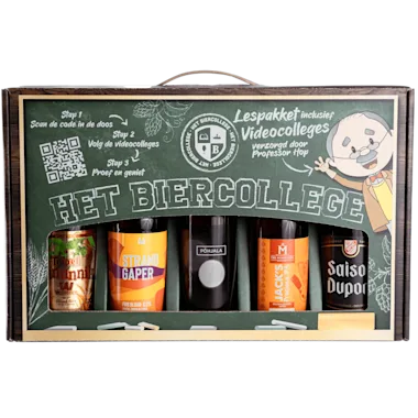 Dit pakket combineert een zorgvuldig samengestelde bierproeverij met interactieve, online lessen van Professor Hop, je digitale biermentor.