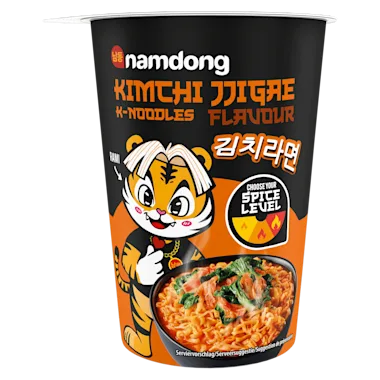 Met Namdong Kimchi Jjigae Noodle Cup geniet je van de smaak van Korea. Leuk weetje: 'jjigae' betekent stoofpot in het Koreaans. Eet jij dit stoofpotje met kimchismaak graag pittig of liever mild? Met Namdong-noedels is de keuze aan jou! Ga voor superpittige kimchi-noodles met het hele zakje chilipeper, of laat het zakje achterwege en geniet van de smaak zonder chili. Probeer je graag eens iets nieuws en voel je je moedig, gebruik dan de helft van het zakje voor een beetje extra pit!