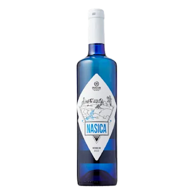 De stromende rivier op het etiket staat voor de bron van leven en symboliseert ook de frisheid van de wijn. De kleur blauw van de fles zien we terug in het riviertje op het etiket. Deze bijzondere fles zorgt er tevens voor dat de wijn beter beschermd is tegen licht en langzamer zal evolueren.