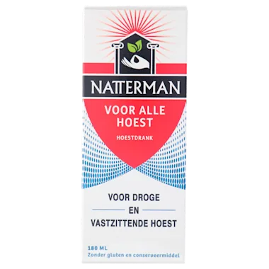 Natterman Voor Alle Hoest hoestdrank wordt aangeraden voor de behandeling van zowel droge als vastzittende hoest bij volwassenen.