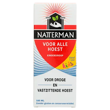 Natterman Voor Alle Hoest kindersiroop wordt aangeraden voor de behandeling van zowel droge als vastzittende hoest bij kinderen.