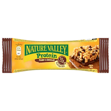 Ingrediënten: Geroosterde PINDA'S (38,6%), geïsoleerd SOJAEIWIT, oligofructose, glucosestroop, plantaardige oliën en vetten (palm, karité, zonnebloem, koolzaad), suiker, chocolade stukjes (4%) (suiker, cacaomassa, cacaoboter, emulgator (lecithinen (SOJA)), maltodextrine, PINDAKAAS(1,9%), magere cacaopoeder, tapiocazetmeel, fructose, lactose (MELK), bevochtigingsmiddel (glycerol), emulgatoren (lecithinen (SOJA)), zout, natuurlijke aroma (MELK), stabilisator (calciumcarbonaat). Voor allergenen: zie vetgedrukte ingrediënten. Kan noten bevatten. Glutenvrij