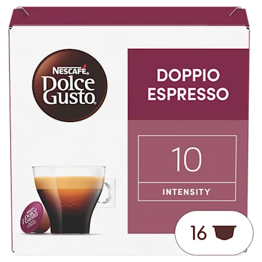 Geef jezelf een boost met de Doppio koffie cups van NESCAFÉ® Dolce Gusto. Met deze fruitige dubbele espresso gemaakt van Premium Arabica bonen kickstart jij elke dag.