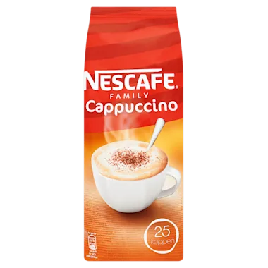 Nescafe family cappuccino is een heerlijke cappuccino oploskoffie met een volle melkschuimlaag. Gemaakt van verantwoord geteelde koffiebonen.