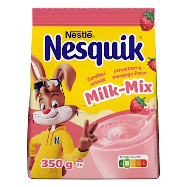 Nesquik aardbei milk-mix: geef je melk een twist! Geniet van een heerlijke aardbei smaak met deze mix. Perfect voor een uniek verwenmoment met het hele gezin.