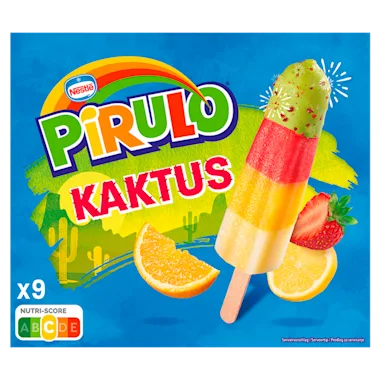 Ingredienten: water, suiker, glucosestroop, sinaasapplesap uit sapconcentraat (8%), citroensap uit sapconcentraat (6%), aardbeienpuree (3,5%), kokosvet, aardbeiensap uit sapconcentraat (0,9%), stabilisatoren (glycerol, guarpitmeel, johannesbroodpitmeel), gedroogde aardbeistukjes (0,2%), magere MELKPOEDER, voedingszuur (citroenzuur), natuurlijke aroma`s, LACTOSE, plantenconcentraten (wortel, pompoen), cacaoboter, kleurstoffen (betanine, chlorofylen en chlorofyllinen), koolstofdioxide, emulgator (lecithinen), natuurlijk sinaasappel aroma.