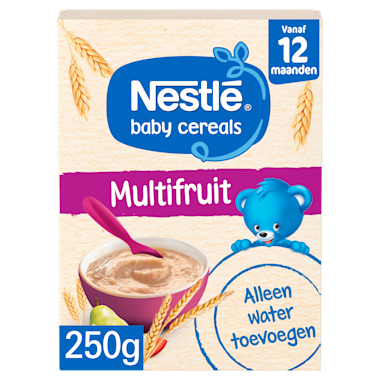 Met Nestlé baby cereals Multifruit geef je altijd een verantwoord. lekker en compleet ontbijtje. Omdat de pap al melk bevat. hoef je er alleen nog maar water aan toe te voegen. Lekker makkelijk!