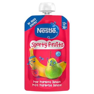 Nestlé® Sporty Fruits laat je kindje kennis maken met de heerlijke smaak van fruit. Heerlijk als tussendoortje. Bevat natuurlijke ingredienten en bovendien geen toegevoegde suikers*.