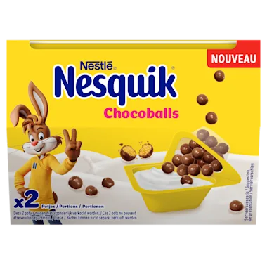 Ingrediënten: Gesuikerde yoghurt (92,5%): Volle MELK (75,6%), magere MELK op basis van magere MELKpoeder, suiker (5,6%), magere melkpoeder, MELKzuurfermenten; Granenballetjes omhuld met MELKchocolade (7,5%): MELKchocolade (4,4%) [suiker, cacaoboter, volle MELKpoeder, cacaomassa¹, lactose (MELK), , emuglator (SOJAlecithine), weipoeder (MELK)], Granenballetjes (2,9%) [TARWEbloem, rijstmeel, suiker, zetmeel, TARWEvezels, GERSTEmout, TARWEmout, zout, aroma), glucosestroop, verdikkingsmiddel (arabische gom), gemodificeerd zetmeel, plantaardige oliën (palm, palmpit), zuurteregelaar (citroenzuur), vanille-extract. Kan bevatten: PINDA, NOTEN, EIEREN, GLUTEN, SESAM. ¹Rainforest Alliance gecertificeerd. Meer informatie op ra.org.